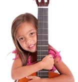 Girl hugging her guitar